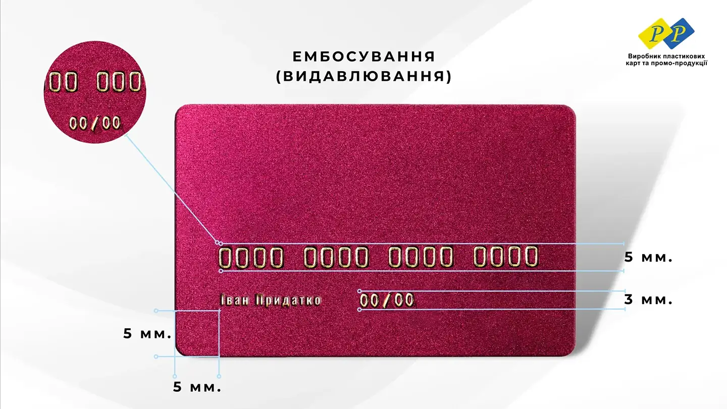 Безпека: Ембосування є одним із високостійких методів захисту картки та інформації від підробки.